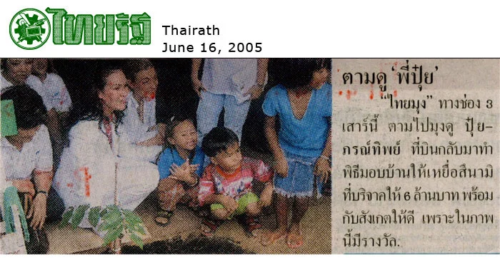 This Saturday, “Thai Mung” from Thai TV Channel 3 will follow Bui – Porntip whom flew back to Thailand for a housing dedication ceremony in which she gave 6 million Baht to Tsunami survivors.
